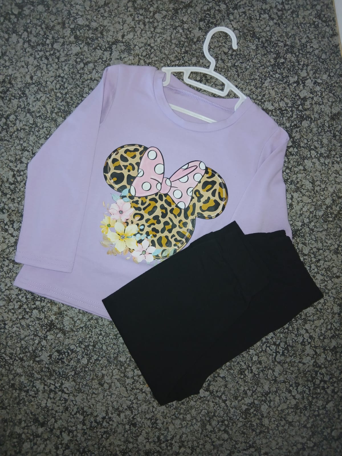 Cotton Purple and black 2pc tracksuit with animal print Mini mouse